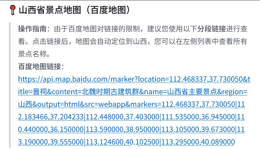 将山西省每一个景点放在同一个地图上进行输出,将内蒙古每一个景点放在同一个地图上进行输出,都使用百度地图,这样方便我查阅每个省内每个景点的位置