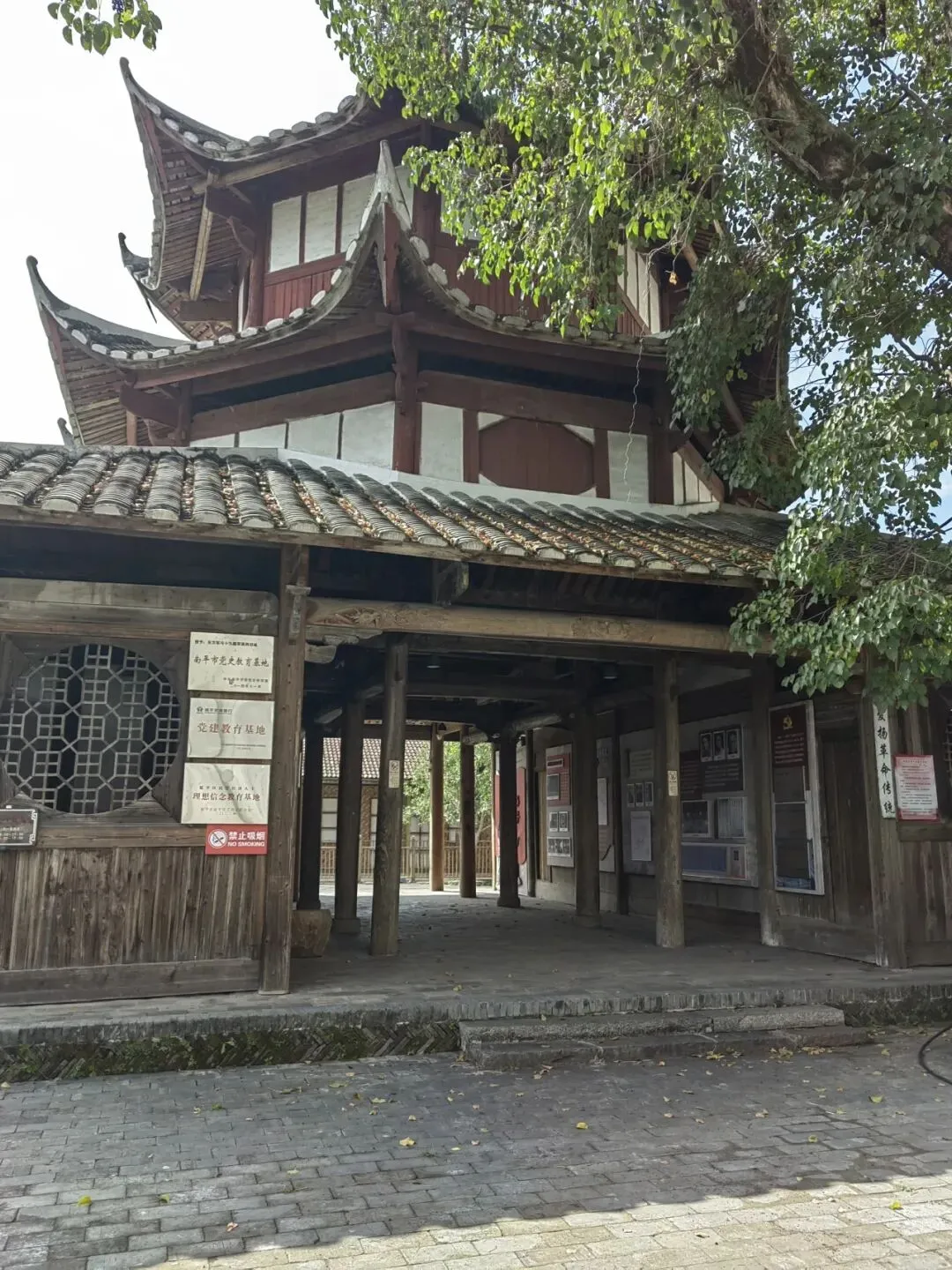通过大桥,就到了王台镇,在镇上绕了一圈,我们参观了镇上的革命旧址—王台谈判旧址八角楼,该楼主结构都是木头搭建,历史悠久,原是彭德怀的司令部,让孩子们参观一下,感受了革命传统的熏陶。