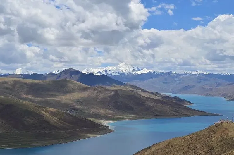 出发前往西藏三大圣湖之一的羊卓雍措,简称羊湖,湖水湛蓝如宝石,蜿蜒曲折的湖岸线缠绕在群山之间,随手一拍都是大片,建议沿着环湖路慢行,避开人挤人的观景台,解锁小众拍照点。