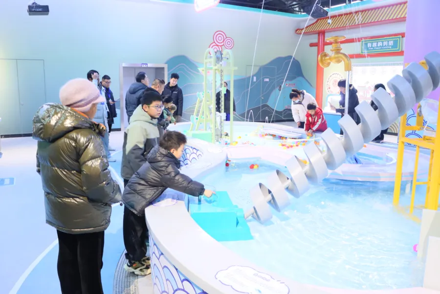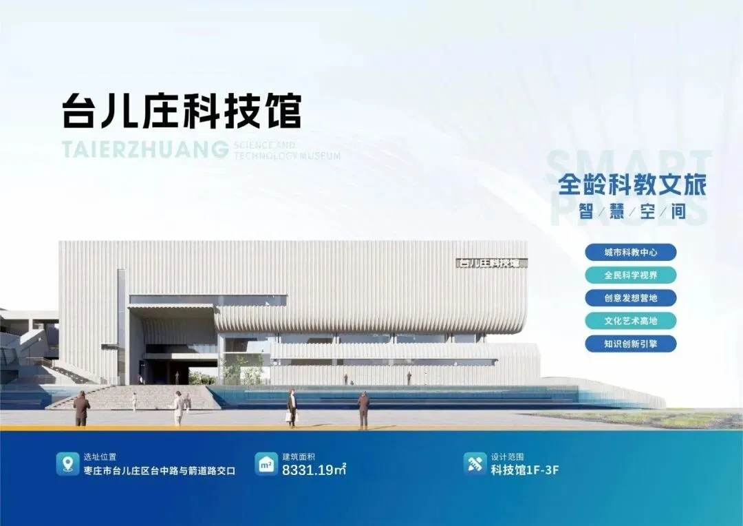 台儿庄科技馆在设计理念上,紧扣“科技”主线,融入运河文化元素,注重互动体验与沉浸探索有机结合,强调展教功能,打造启智、创新的体验空间,体现“互动性强、主题鲜明”的展陈特点。馆内设有“流动的智慧”“通联的世界”“无尽的探索”三大主题展厅,并配套“科技会客厅”、临时展厅、特效影院、科学MORE等公共展教区域。