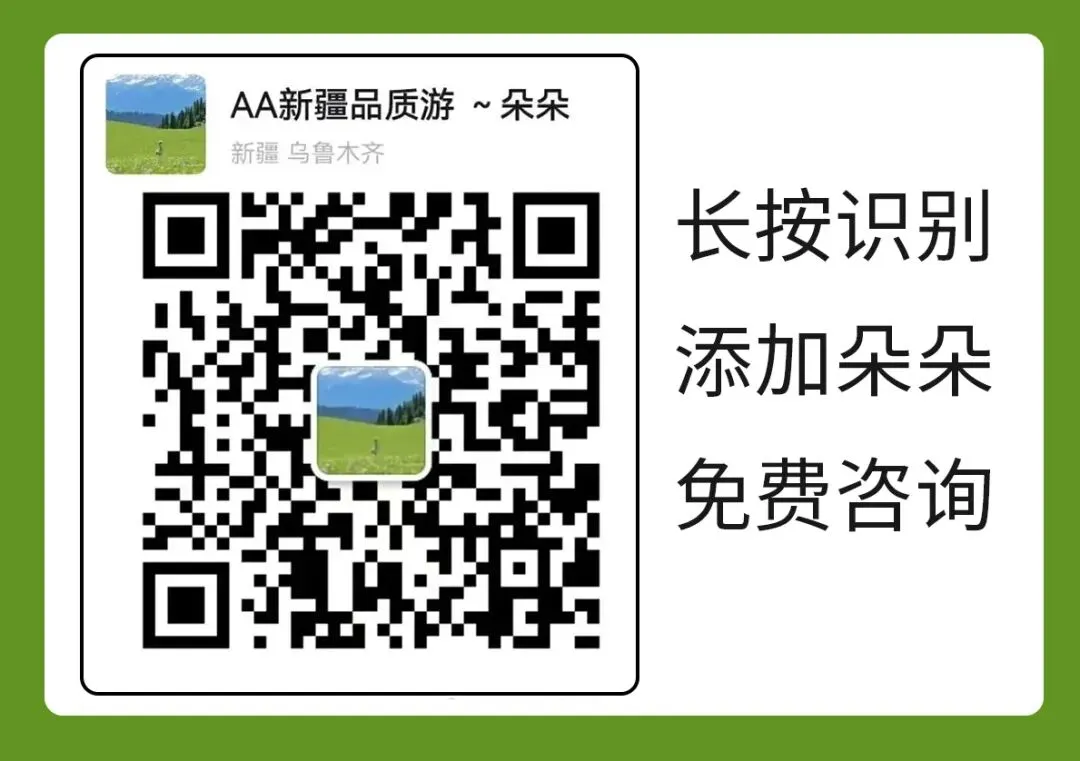 真诚推荐:想选择靠谱小团的朋友可以加下领队朵朵,她家是新疆本地专业旅行社,多年专做2-6人纯玩小团口碑好,6-12天路线都有,需要的朋友扫一扫下面名片添加领队朵朵 免费咨询哦~