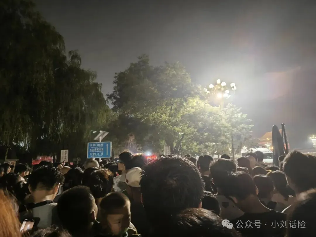 如果想要能近距离看升旗仪式,需要一夜不睡觉排队,有人带个薄博的垫子在前排等着,也有带着小凳子的,还有站着排队的。