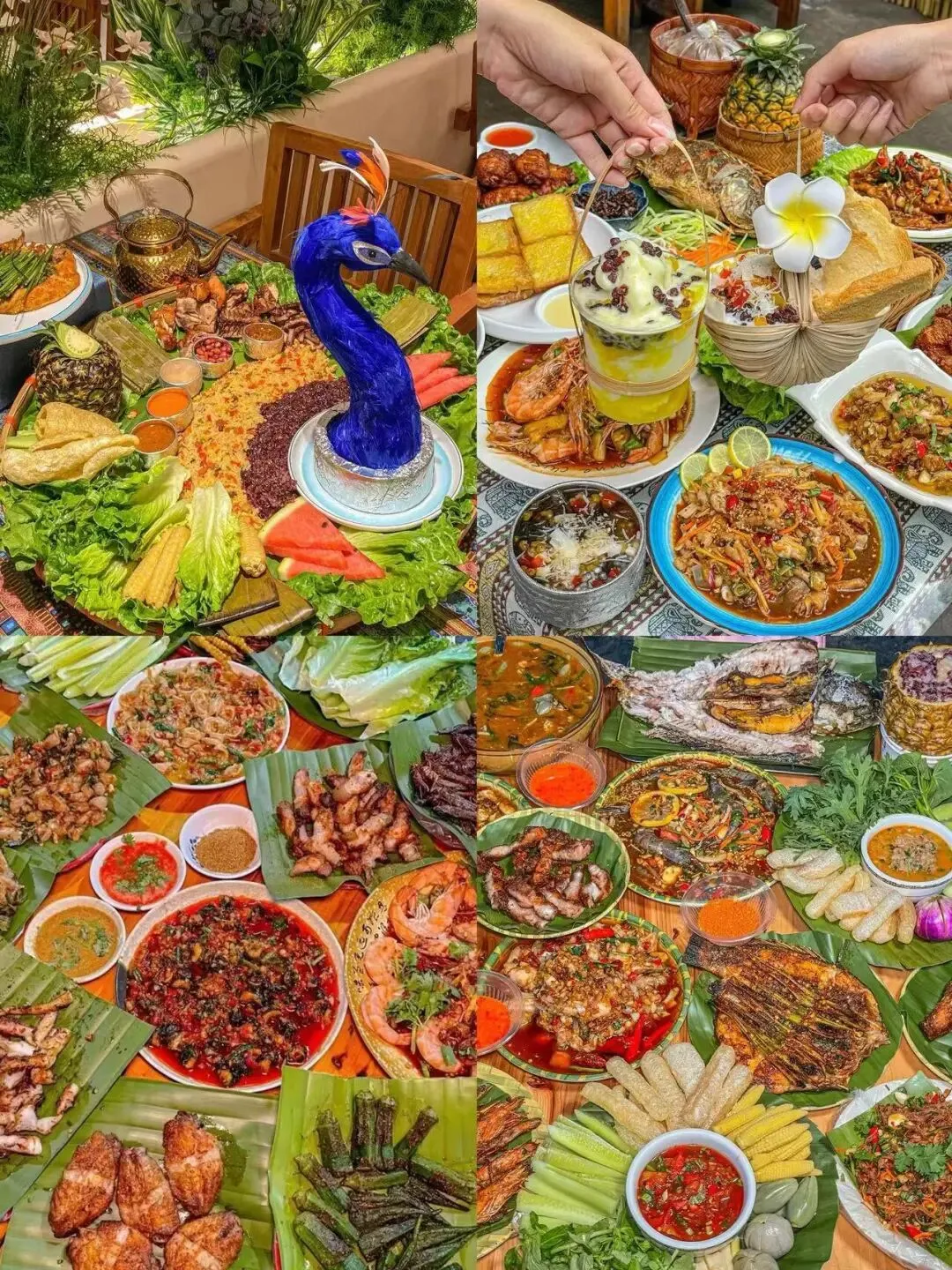 ☑️美食推荐:菠萝饭、手抓饭、香茅草烤鱼、舂鸡脚、傣族烤五花肉