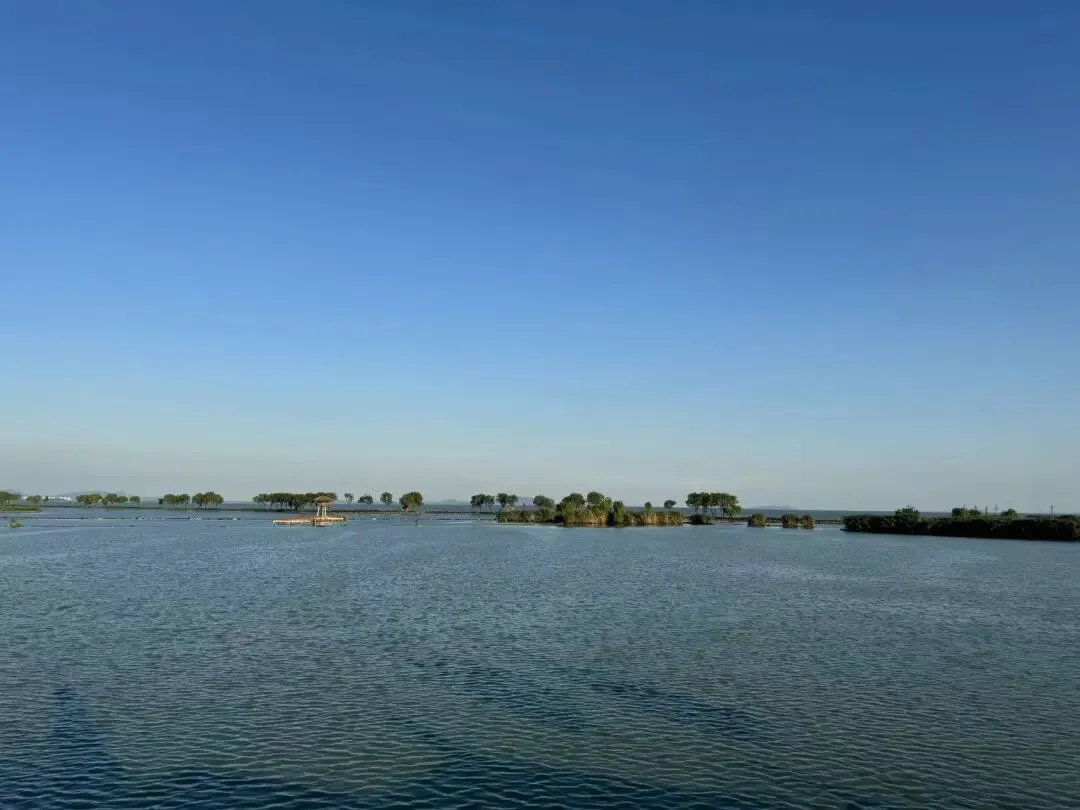 从渡江战役纪念馆出来走到巢湖边远眺,湖天一色,美不胜收,感觉像是来到了海边。