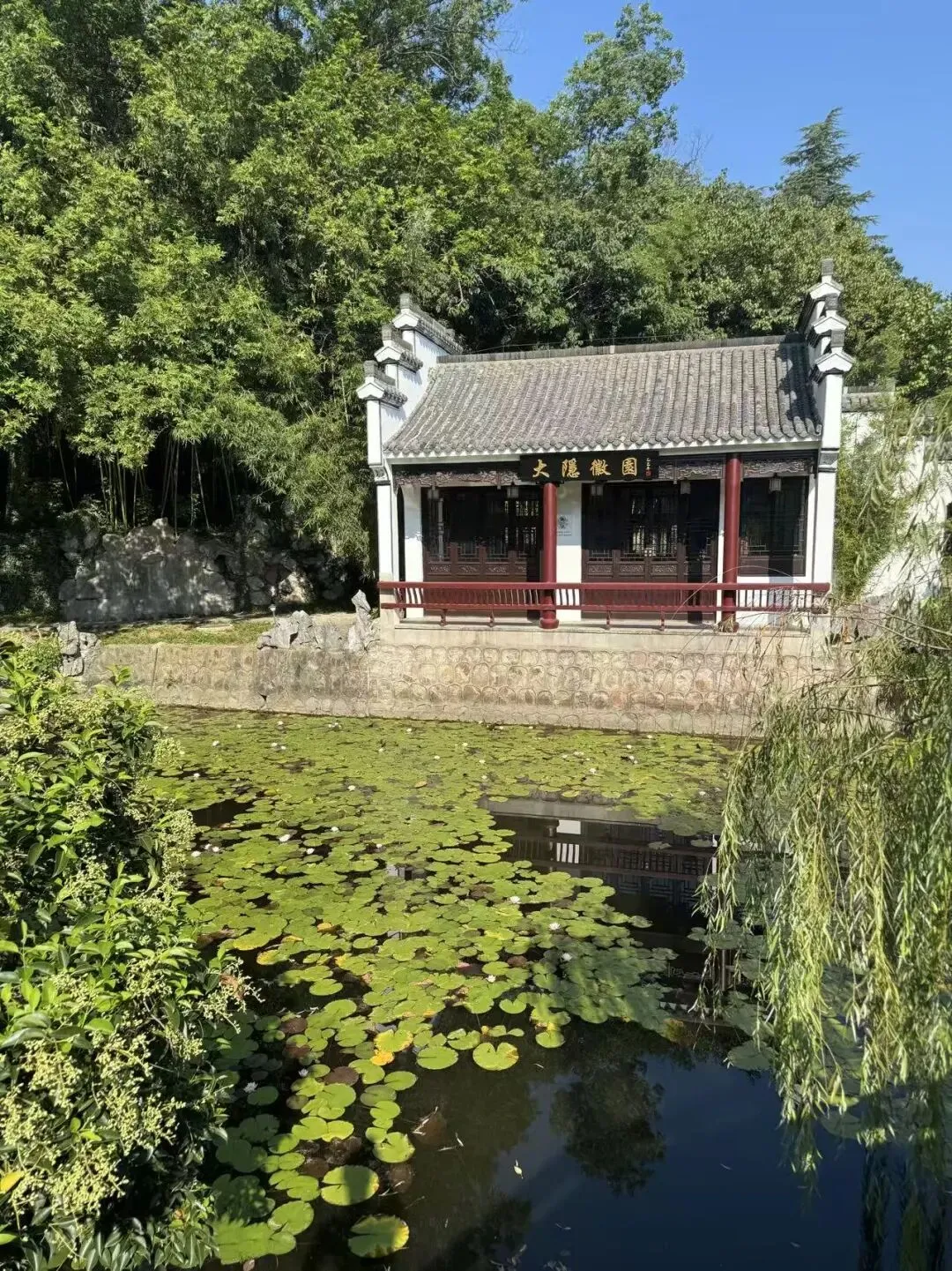 步入园内,随处可见白墙黛瓦,小桥流水,充满了水墨画般的诗意。