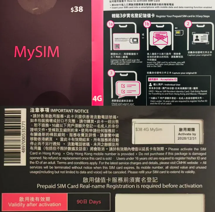 现场购:过关后在7-11等便利店可买本地电话卡(推荐MySIM,38港元,90天,无限本地流量),需要实名登记(港澳通行证/护照),即买即用。