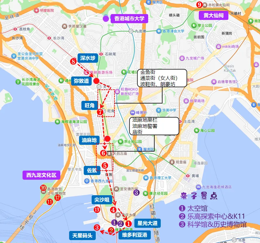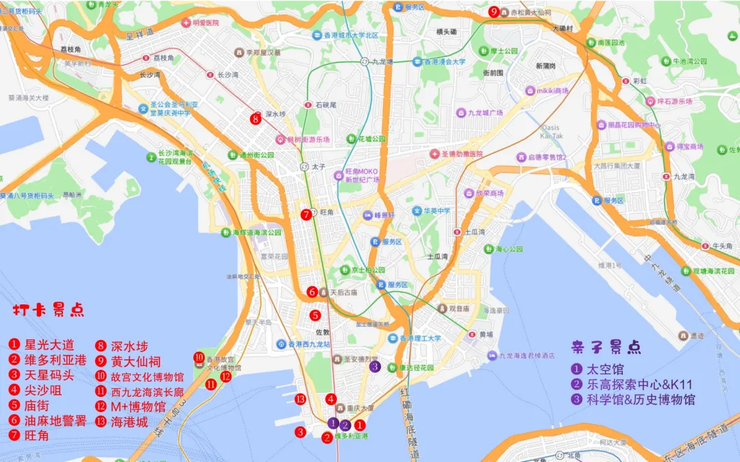 核心打卡点:海港城、重庆大厦、油麻地警署、庙街夜市、女人街