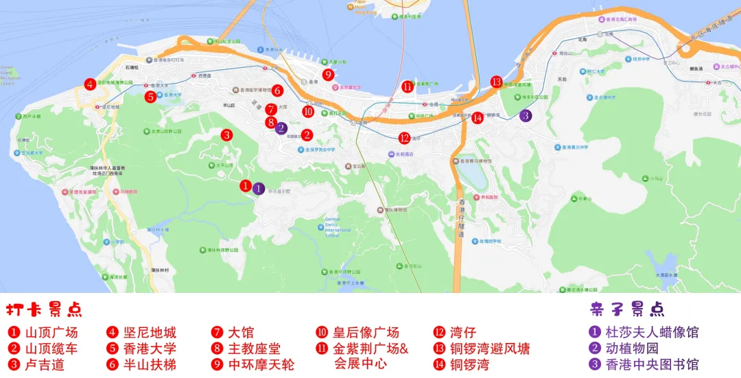 核心打卡点:太平山顶、半山扶梯、中环街市