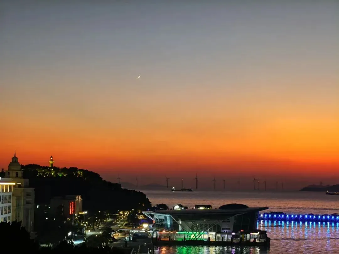 18:00~18:30趁着晚霞尾巴,回到网红斑马线的码头,抓住金色洒满海面的时刻和灯塔拍个剪影,与晚霞同框,浪漫到失语。