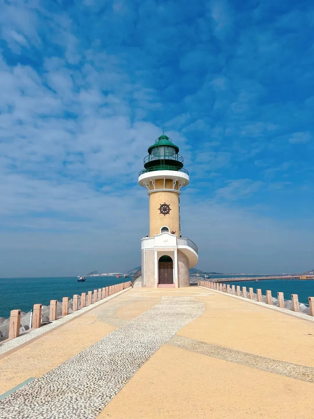 🔷 一号堤灯塔:网红堤坝,延伸入海,坐在堤坝上身后是蓝色大海,亦或者近距离和灯塔合照,故事感拉满。