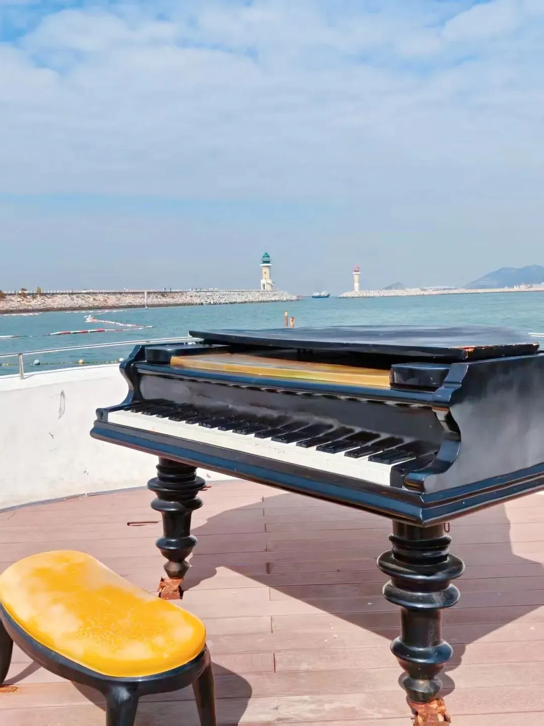 前往一号堤沿途及周边有很多可爱的桂小白,必须来个可可爱爱的合照。还有海上钢琴,经过时别忘了打卡哦。