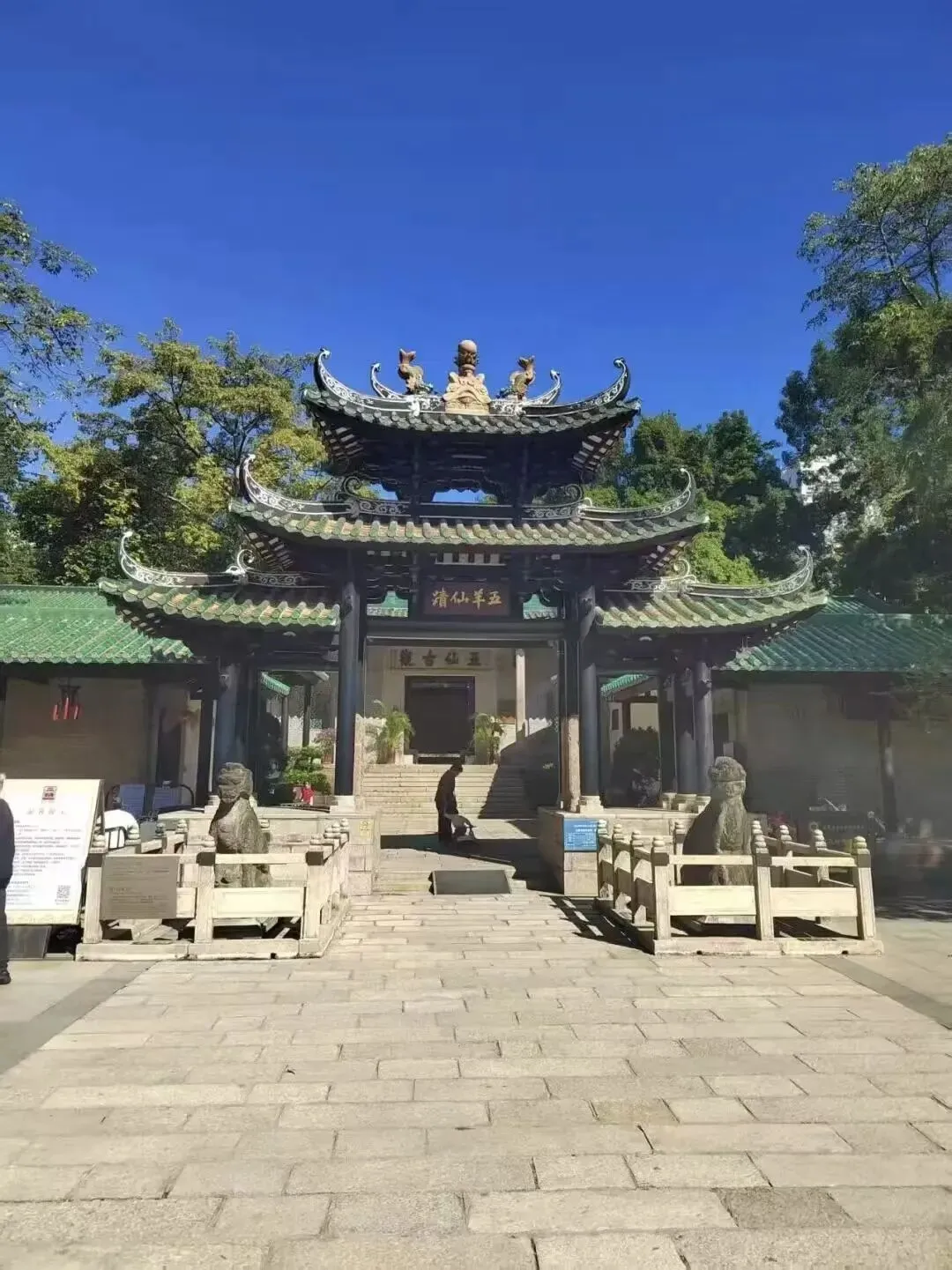 - 景点介绍:五仙观是纪念 “五羊衔谷” 传说的重要庙宇,是广州 “羊城” 别名的起源之地,历史可追溯至北宋,明代重建后延续至今。观内建筑古朴典雅,岭南庙宇风格鲜明,青砖灰瓦,结构简洁庄重,院内古木苍翠,环境清幽。其中最著名的建筑是 “岭南第一楼”,楼内悬挂一口明代巨型铜钟,钟声浑厚,历史悠久。观内还有一处天然红砂岩遗迹 “仙人拇迹”,相传为五仙降临留下的足迹,充满传奇色彩。五仙观虽规模不大,却承载着广州最古老的城市起源传说,是了解羊城历史文化源头、感受老城古韵的重要场所,位置隐蔽安静,游客不多,非常适合静心游览。