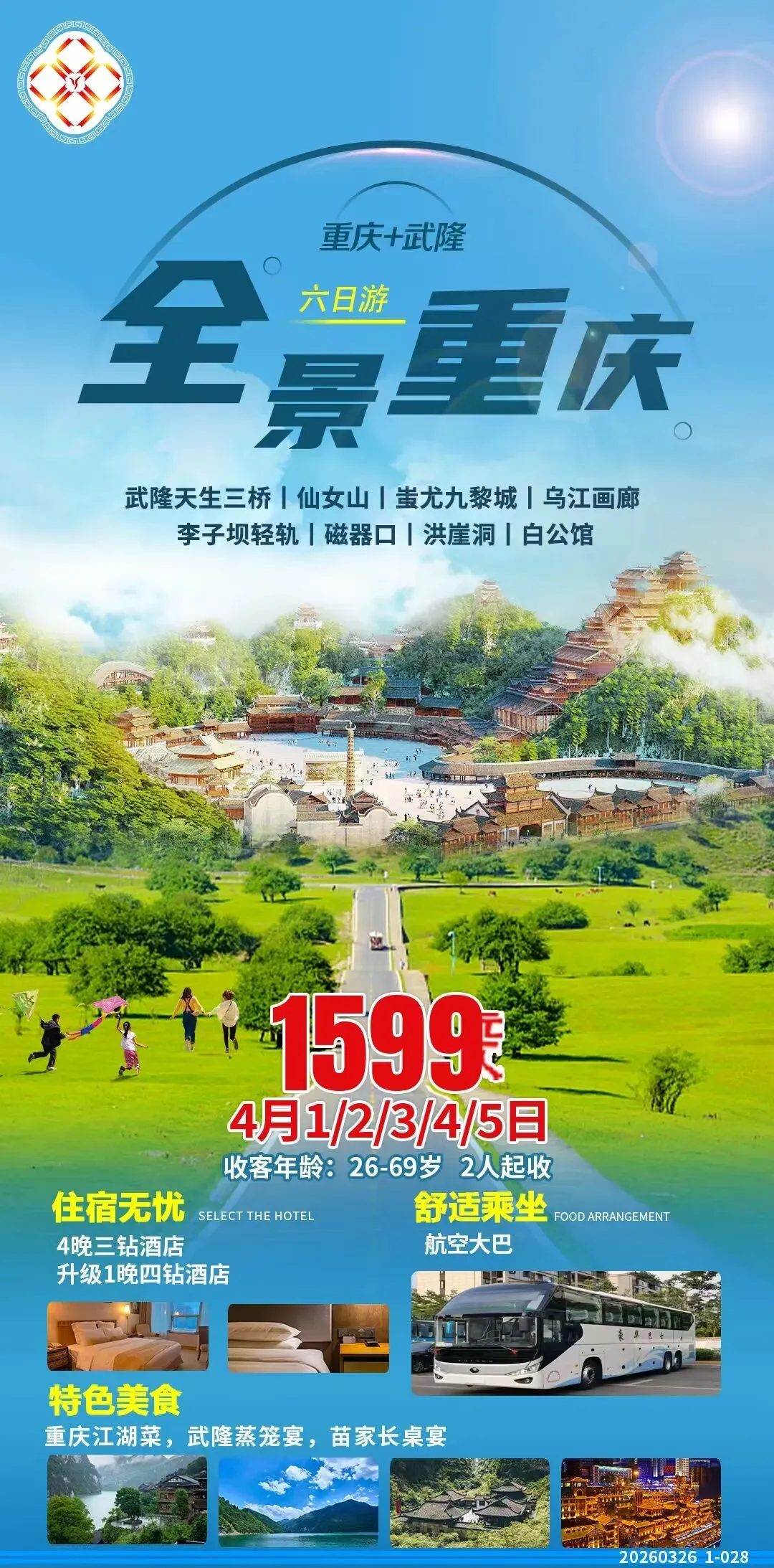 [强]畅游重庆:天生三桥、仙女山、乌江画廊游船、芙蓉洞、天坑寨子、磁器口、渣滓洞、洪崖洞、点易园、李子坝轻轨穿楼