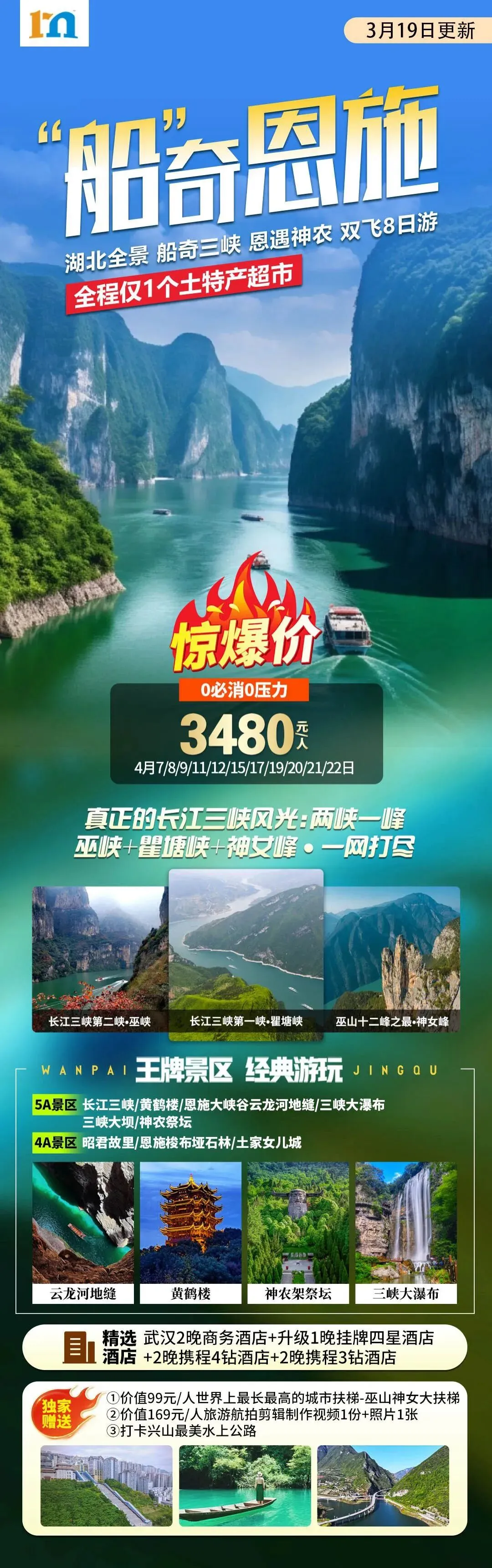 👍船奇恩施,遇上神农架武汉双飞8日游