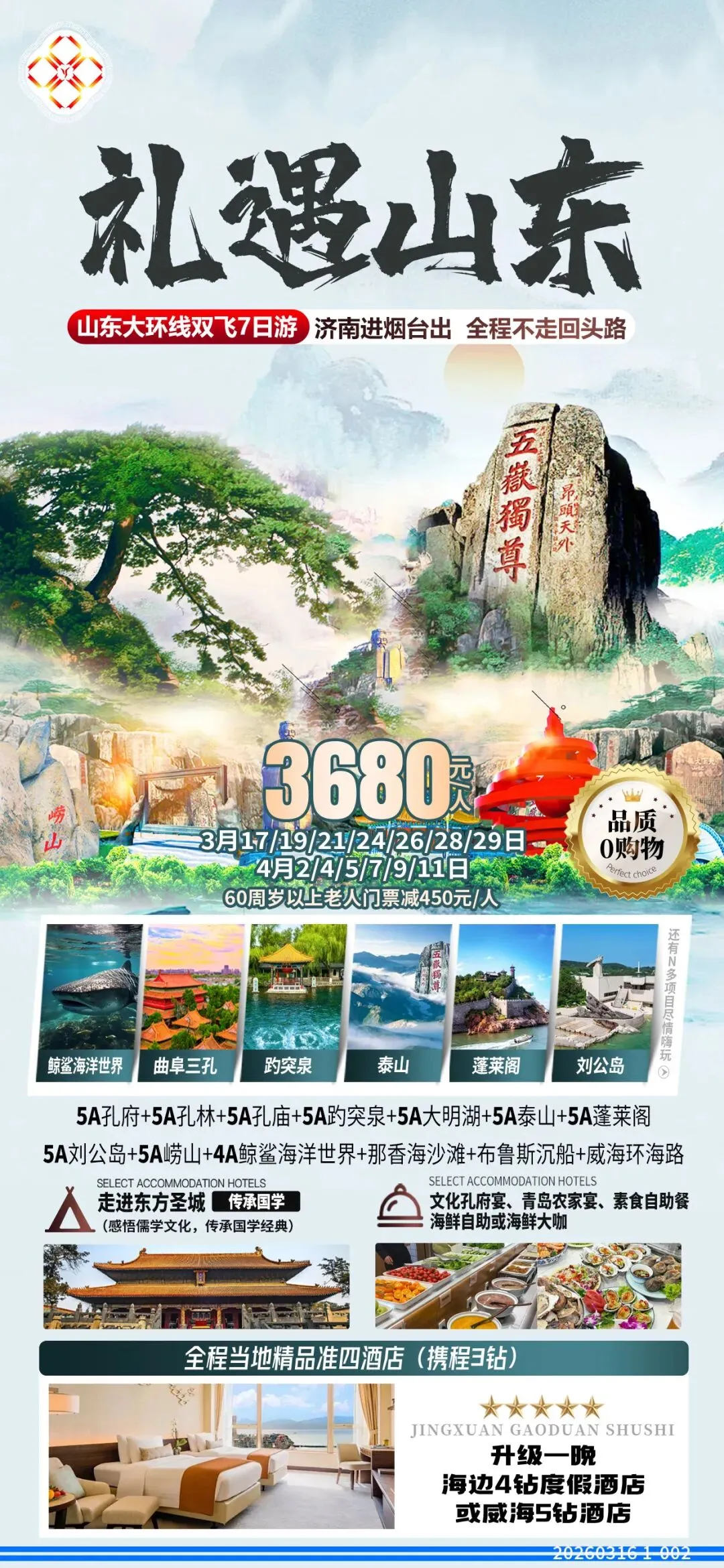 ☀济南进✈ 烟台出✈ 全程不走回头路✅