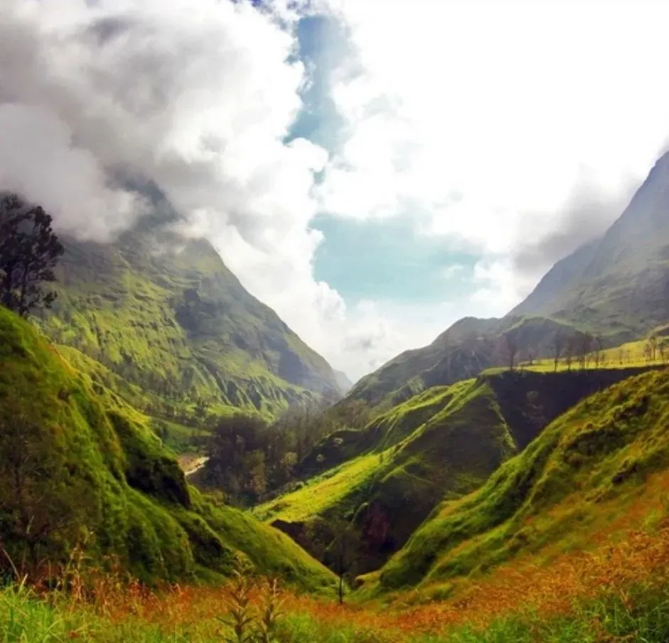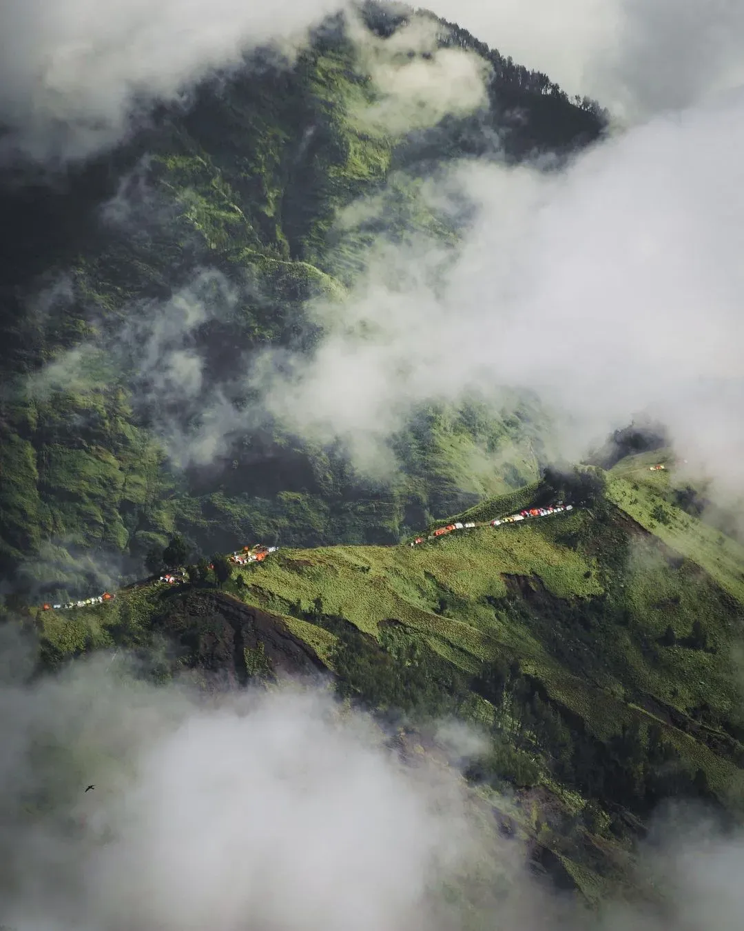 这是最受欢迎的路线,也是挑战顶峰的最佳选择。起点是绝美的大地“眼影盘”——森巴伦村(Sembalun),这里海拔较高,地形以开阔的稀树草原为主,视野极佳。