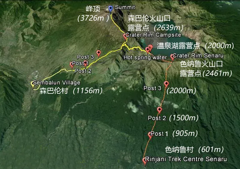 林贾尼国家公园有两个主要入口,分东线和西线。东线从桑巴伦村(Sembalun)出发,西线从色纳鲁村(Senaru)出发,两条线都是从一个村庄出发,下山到另一个村庄。而通往林贾尼火山顶的路不止一条,官方发布的徒步路线至少有6条(戳这里复习)。