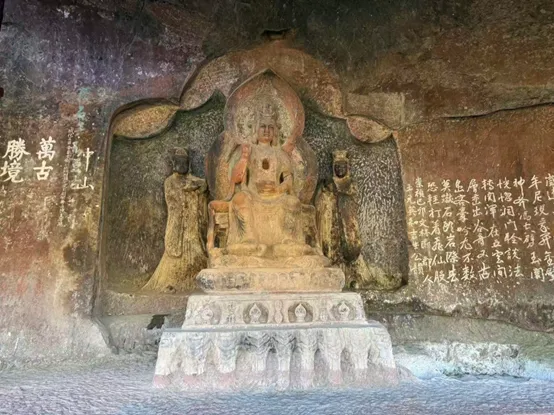 其实,我来沙溪的首要目的还不是因为《去有风的地方》,而是因为距离古镇仅有15公里的石钟山石窟。它被费孝通称为“南天瑰宝”,与敦煌莫高窟、云冈石窟、龙门石窟同一年(1961年)被列为第一批全国重点文物保护单位。这是云南现存规模最大、开凿历史最早的石窟群,距今已有超过1000年的历史。