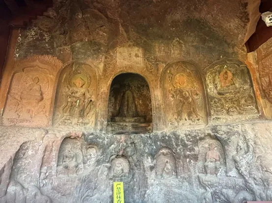 石钟山石窟最独特的地方,是它把人间帝王刻进了佛国圣地,这在中国的石窟艺术中极为罕见。石窟精心选取了南诏国三位最具代表性的国王,用写实的手法再现了他们的形象。细奴逻(第一代王):狮子关区的“全家福”造像,王与王妃并坐,中间及两侧坐着孩子,陈设简朴,带有山民特有的质朴风姿。题记明确记载了这是南诏第一代主“晟蜀罗”;狮子关距离石钟寺徒步得1.5小时左右,我因为时间不够就没有去。