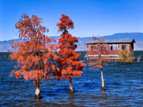 龙龛码头:水杉林、日出观赏地,冬天水杉变红,海鸥成群,是拍日出的绝佳机位。