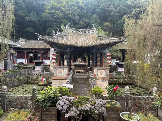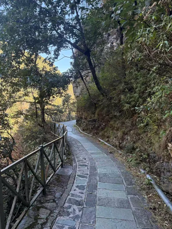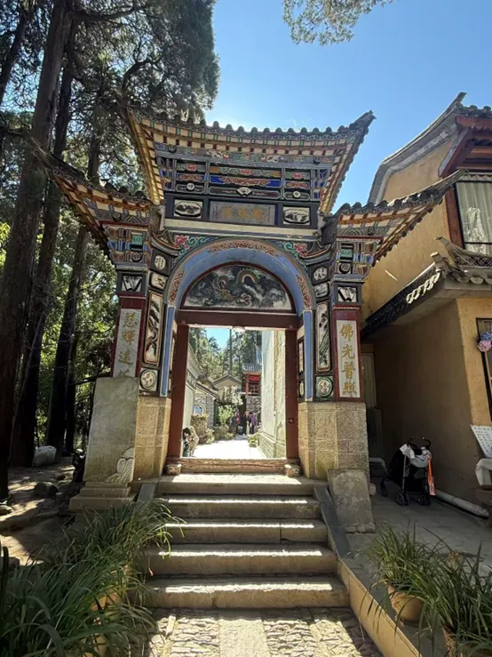 来巍山,除了逛古城,还有一个必打卡项,那就是爬巍宝山。这里保留22座明清道观,主峰2509米,徒步约3-4小时。说实话,要不要爬巍宝山我还做了一番思想工作,但事实证明很是值得。巍宝山不是那种让你“哇”出来的壮丽雪山,而是需要你慢慢走、静静品的清幽之地。山间古木参天,宫观掩映在密林之中,每走几分钟,就会看到一组雄伟的道教古建筑,不知不觉时间就过去了,也不会觉得很累。