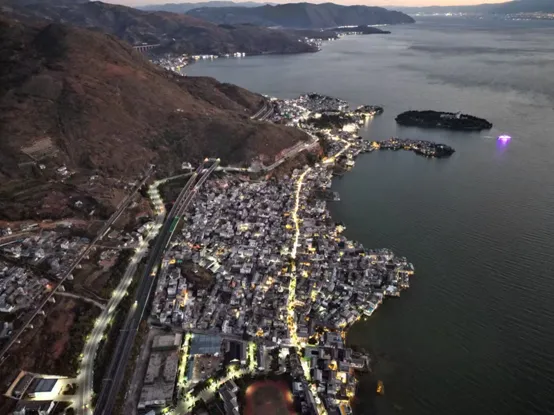 磻溪村S湾:网红S形弯道,洱海“最美转角”,白色步道随湖岸弯曲,一侧是洱海,一侧是白族民居,拍照绝佳。