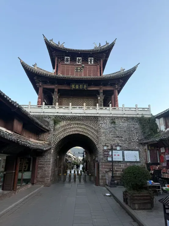 拱辰楼:明代古城楼,巍山标志性建筑。楼上有“魁雄六诏”“万里瞻天”匾额,登楼可俯瞰古城全景。2015年火灾后按原貌修复。