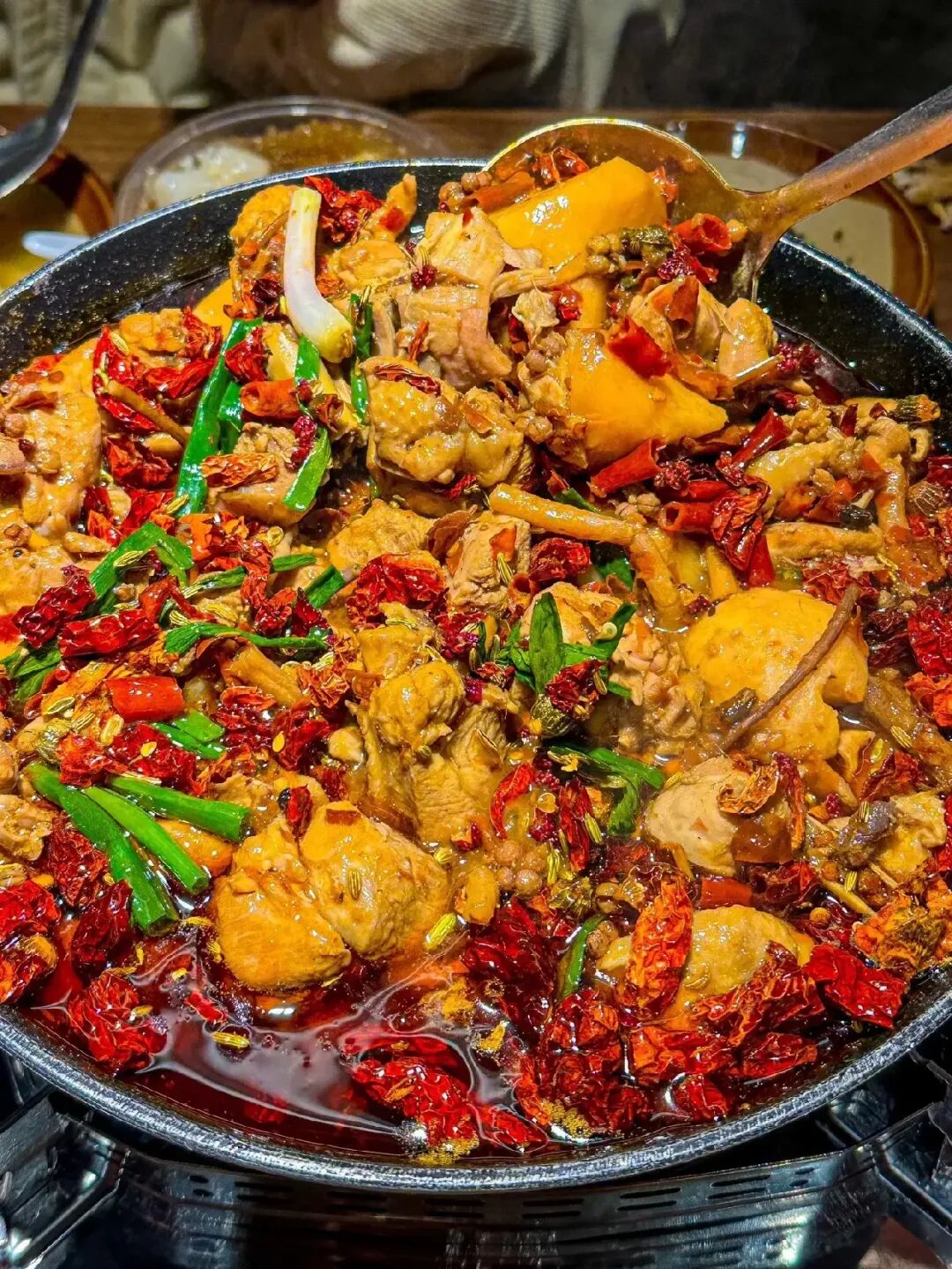 这是郴州"重口味"的代表作,尤以安仁县的最为出名。选用土鸡,斩块后与大量的老姜、辣椒一同爆炒,再慢炖收汁。成品色泽红亮,香气扑鼻,鸡肉紧实入味。 7. 安仁抖辣椒
