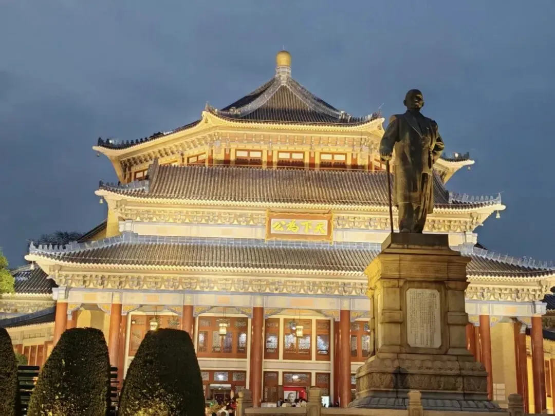 - 景点介绍:中山纪念堂建成于 1931 年,是为纪念孙中山先生而修建的大型纪念建筑,为全国重点文物保护单位,也是广州近代标志性建筑之一。建筑采用仿中国古典宫殿式风格,蓝色琉璃瓦屋顶,红柱白墙,气势恢宏壮丽,造型庄重典雅,融合了中式传统建筑美学与现代结构技术。纪念堂内部空间巨大,整座大堂无一根立柱遮挡视线,设计极为巧妙,是近代建筑工程史上的杰作。园区内古树参天,环境开阔大气,广场庄严整洁,是市民休闲、缅怀历史、感受近代建筑艺术的重要场所。无论是建筑美学还是历史意义,中山纪念堂都堪称广州近代古建中的典范之作。