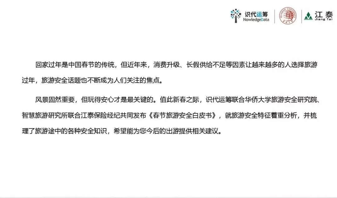 《2019春节旅游安全白皮书》重磅首发2019春节旅游安全白皮书 华侨大学智慧旅游研究所 陕西识代运筹 江泰保险经纪