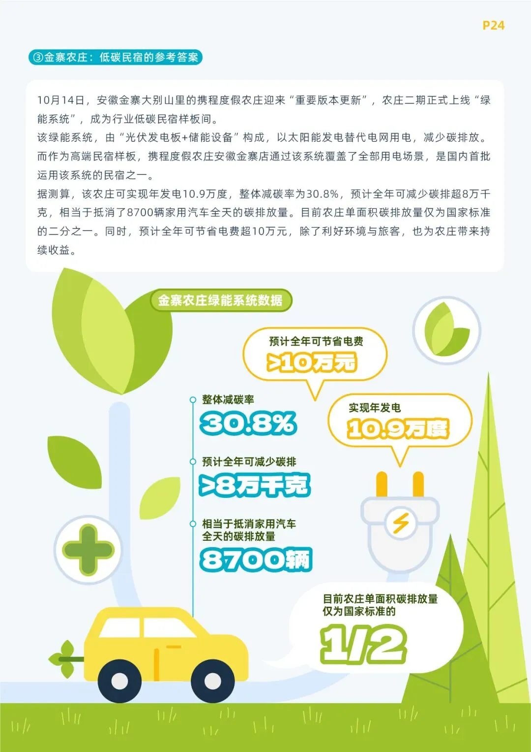 在人之外,携程还发挥了农庄作为民宿标杆的城乡枢纽作用,挖掘了43类各地优质农产品入选农庄助农甄选,通过农庄线下展示和携程会员商城线上售卖的形式,2023年带动3019.18万农产品收入增长,同比2022年提升近30倍。