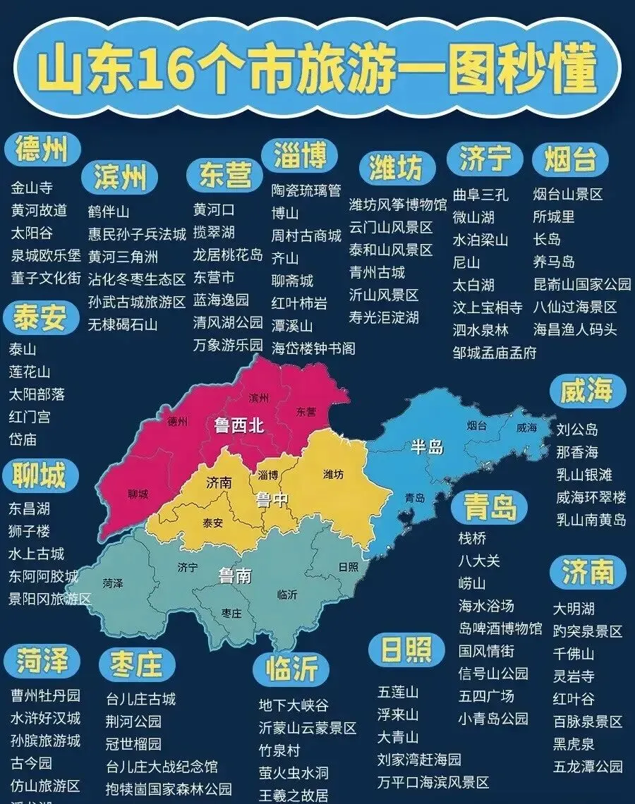 ✅泰山,世界自然与文化双遗产,五岳之首,日出云海、摩崖石刻、十八盘险径,尽显 “会当凌绝顶,一览众山小” 的豪情; ✅崂山,海上第一名山,道教仙韵与碧海蓝天相映,峰峦叠翠间藏着山海灵秀; ✅沂蒙山,层峦叠嶂、林海苍茫,红色底蕴与绿色生态共生。 - 海岸旖旎