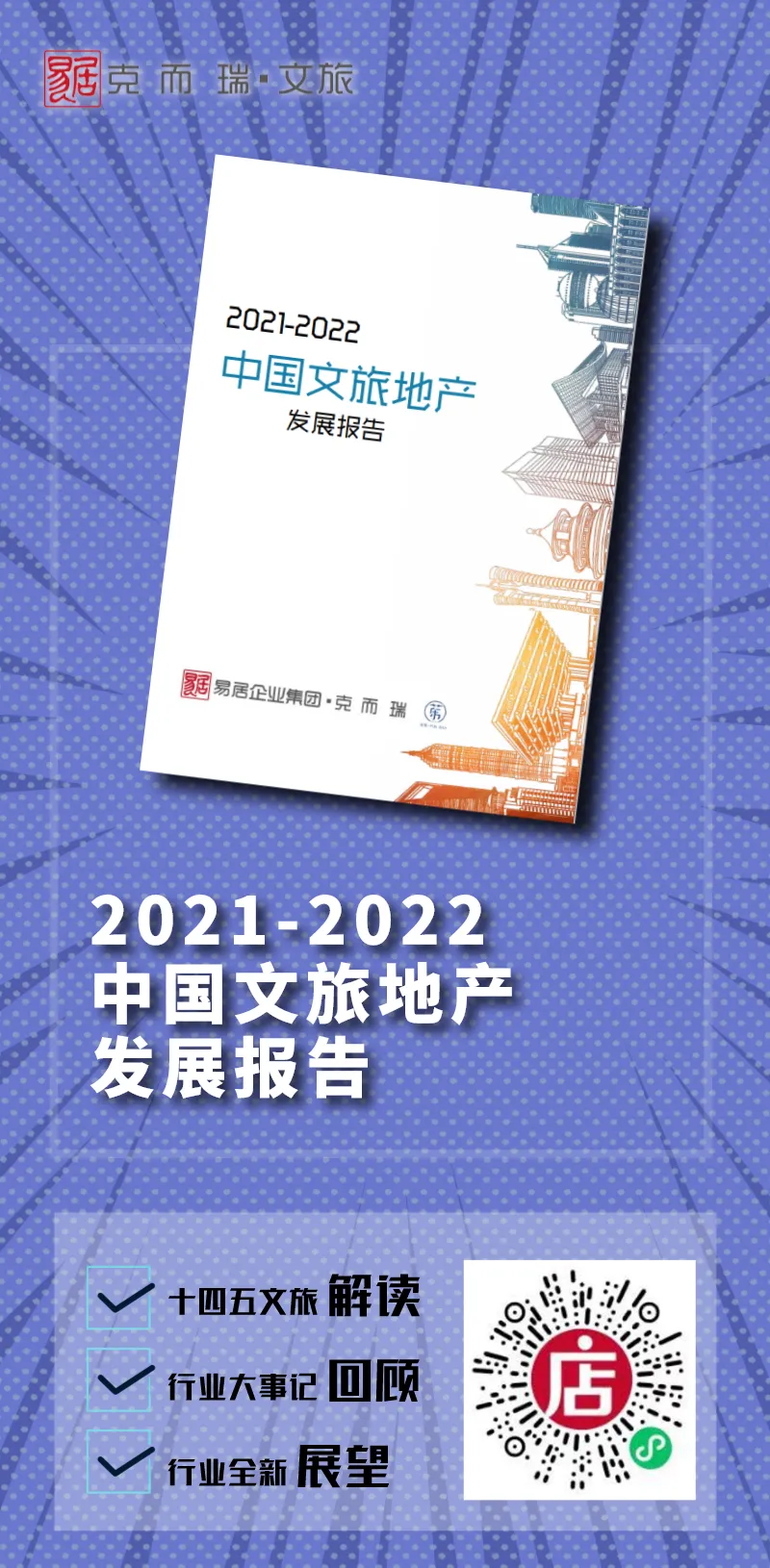 易居克而瑞深耕文旅多年,在第十个年头重磅发布《2021-2022中国文旅地产发展报告》。报告聚焦六大区域市场,分析中国文旅地产发展历程及现状,在延续以往研究的基础上,新增“十四五”等文旅相关政策解读,同时,“文旅十大关键词”,全新升级为“文旅地产大事记”,在更多权威数据的基础上,更加细致地进行归纳总结,为文旅从业者作出指引。