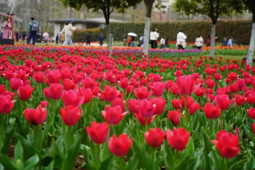 郁金香:最佳花期3月中旬至4月中旬,西安市兴庆宫公园正举办第三十二届兴庆宫春季花展,园内种植了18个品种的21万余株郁金香。