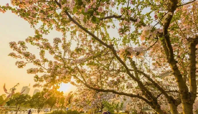 樱花:最佳花期3月下旬至4月上旬,西安环城公园中山门段、曲江池西路、高新二路等地,沿街种植成片的观赏樱花。