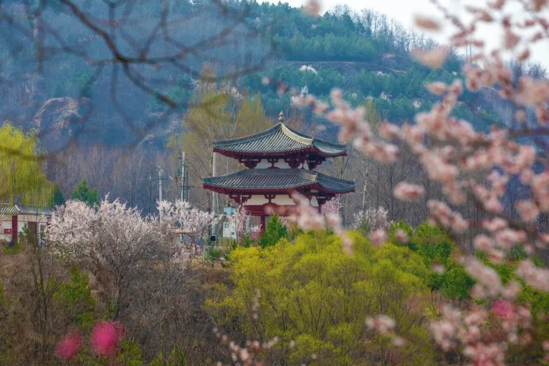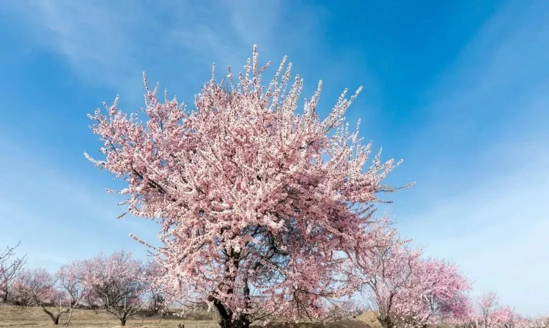 山桃花:最佳花期3月下旬至4月中旬,延安黄龙县穆柯寨、富县秦直道遗址公园等地,山桃花悄然绽放,一簇簇、一片片,如云似霞。