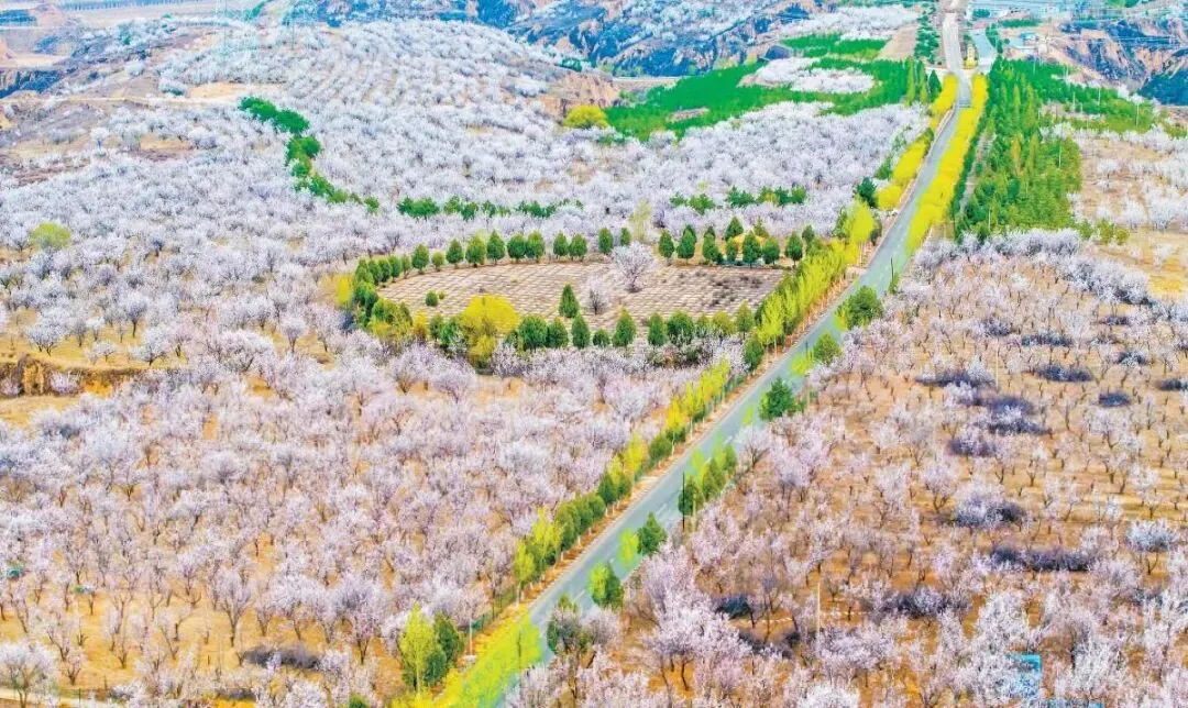 杏花:最佳花期3月下旬至4月中旬,榆阳区古塔镇杏花岭景区、王渠则镇王渠则村西涧丹林等地种植万亩杏树,粉白相间,缀满山坡。