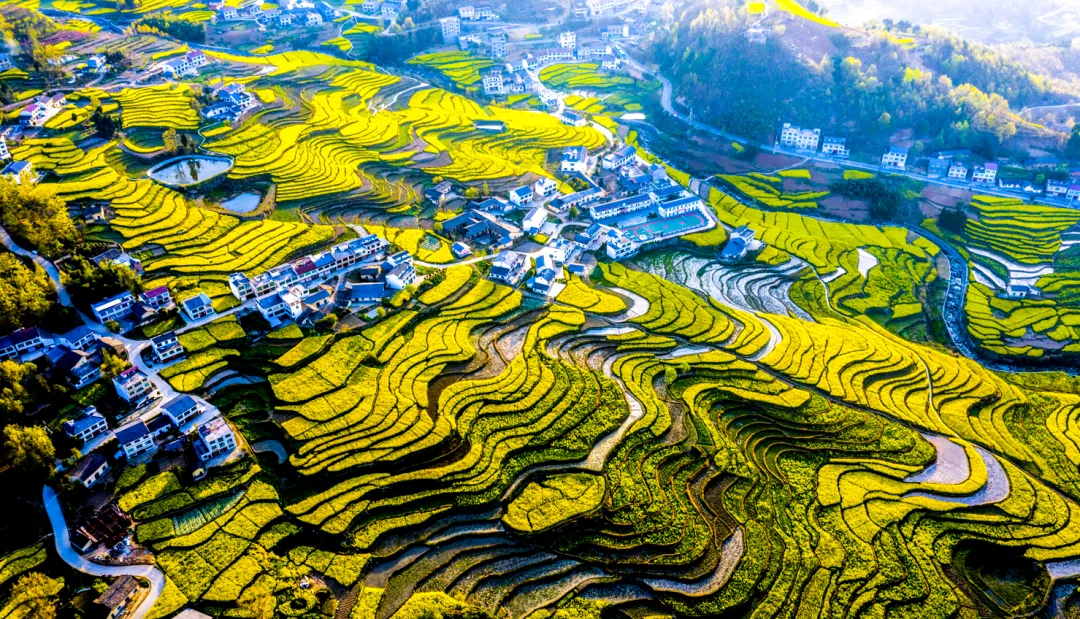 油菜花:最佳花期3月下旬至4月中旬,汉滨区石梯镇双村村、凤堰古梯田等地区,春水灌田,油菜花漫山铺金,随手一拍就是油画大片。