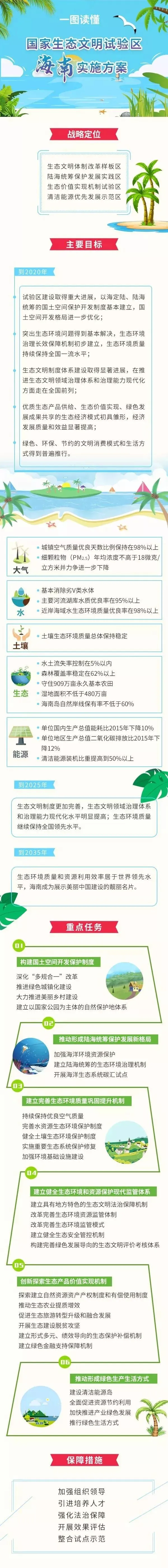 近日,中共中央办公厅、国务院办公厅印发了《国家生态文明试验区(海南)实施方案》,并发出通知,要求有关地区和部门结合实际认真贯彻落实。《方案》提出一系列重点任务,其中包括促进生态旅游转型升级和融合发展、建立以国家公园为主体的自然保护地体系等具体任务。
