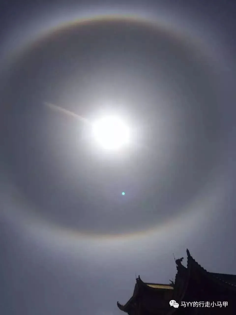万万没想到,山顶天气瞬息万变,之前还是云雾缭绕的,之后便阳光普照。时机不错,我们既看到了云海,还看到了难得的“佛光”,算是另一种补偿吧。