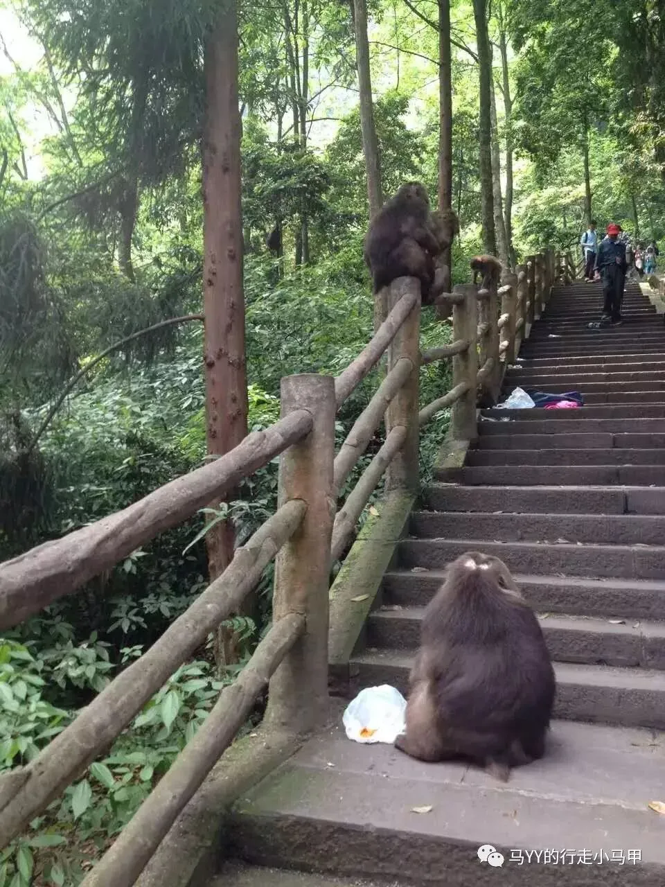 峨眉山只要是可以让人通行的地方,就会有猴子,而且猴子还很彪悍,不仅不怕人,还会抢你的东西。根据我们被咬的经验,千万千万不要在猴子面前翻包,特别容易被抢!千万不要乱投递,会盯着你不放,可能还会爬你身上,抱着你脚不让走之类的,可怕。