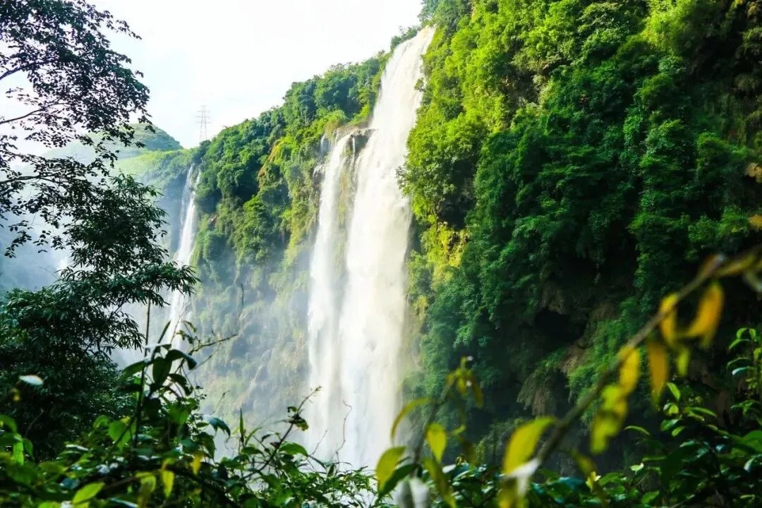 黄果树大瀑布:夏季的黄果树大瀑布已经正式进入丰水期,奔腾的河水从70多米高的悬崖绝壁上飞流直泻犀牛潭,发出震天巨响,蔚为壮观。