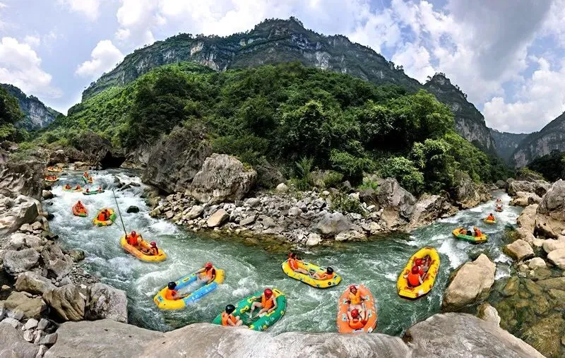 南江大峡谷:最为典型、发育最为成熟的喀斯特峡谷风光,岩壁耸峭,形同刀削,气势宏大,云雾缭绕,抬头仰望头顶一线天,不得不惊叹造物者的创造力。这种得天独厚的地势漂流最安逸不过,必须体验!