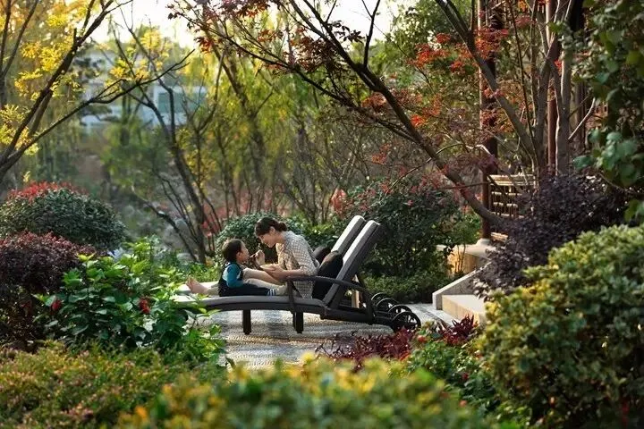 不论是哪种房型,格调都是四季一如既往的轻奢,柔软如云的床品、典雅又不失温馨的家具、高品质的设备、清香的鲜花、还有窗外迷人的景致。其中,特级客房更自带一方美美的庭院,一家人坐在其中,尽享天伦之乐。