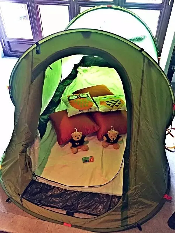 丰富精美的儿童欢迎点心早就提前摆置好,萌萌的儿童帐篷必是惹得小宝贝立马爬进去!帐篷中,酒店布置着柔软的床品、可爱的卡通抱枕、还有两只最讨喜的小浣熊。