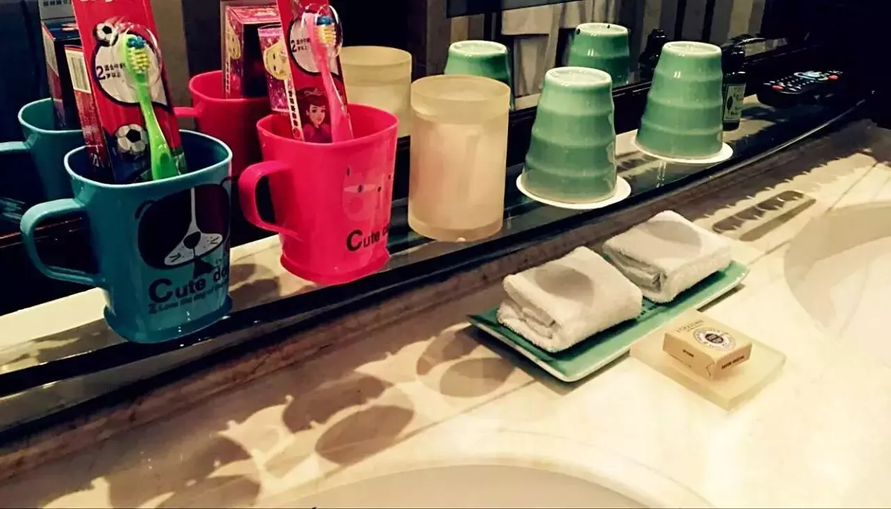 再细细看来,四季真是贴心至极,男宝宝女宝宝两种颜色、不同尺寸的小拖鞋,另外还有儿童伞具、儿童睡衣提供。在干湿分离的宽敞卫浴间,也准备着两种颜色的儿童牙具、卡通防滑垫,在大浴缸里还有小黄鸭陪伴宝贝洗澡!
