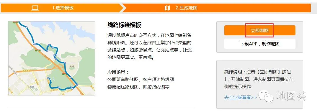 1、登录地图慧大众制图网站,进入【制图】页面,选择【线路标绘模板】