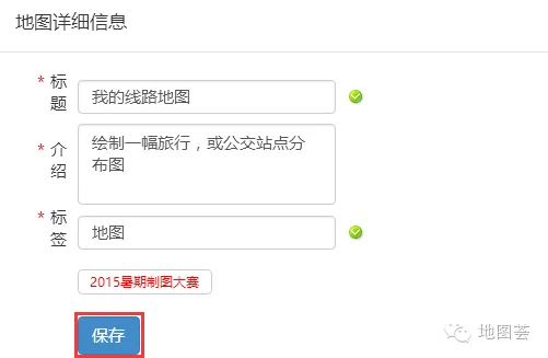 3、完善地图详细信息,点击【保存】即可进入地图编辑页面。