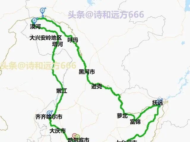 如果时间的确不够但想游得精华一点或不想环黑龙江全境自驾游,可以考虑下图中的黑龙江自驾小环线游: