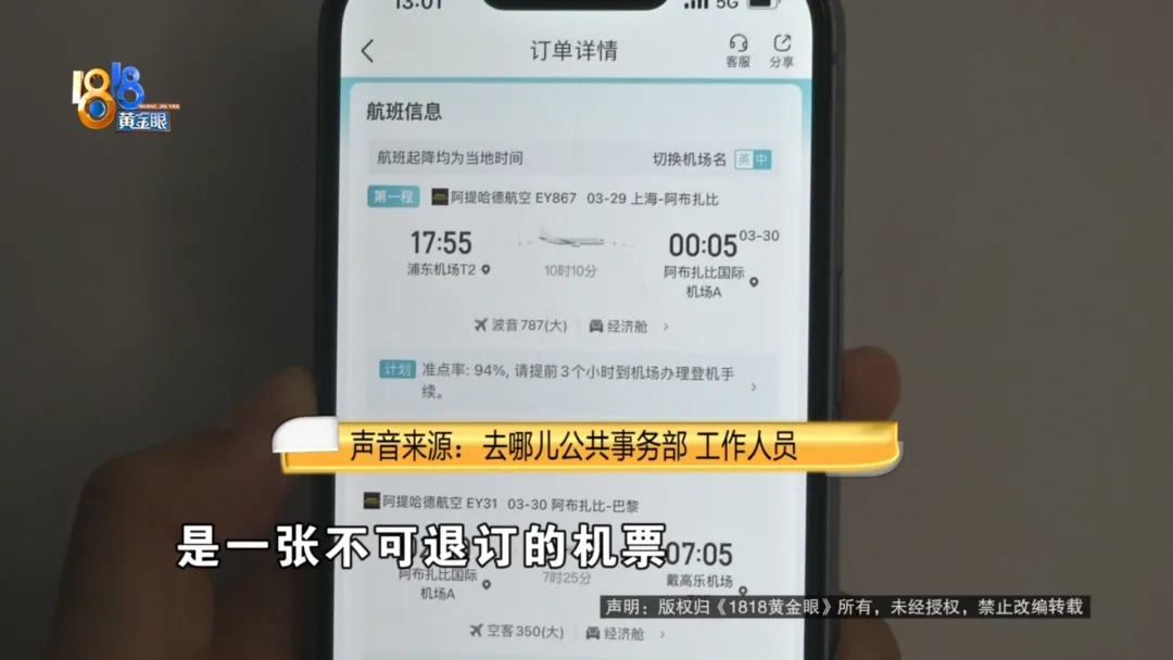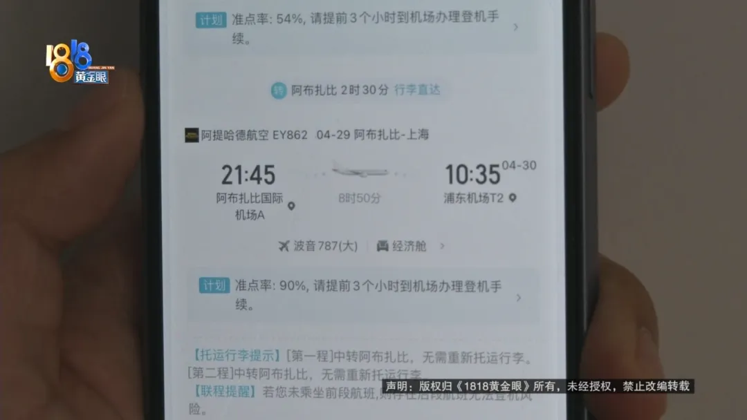 郭先生:平台说这个没办法,已经出票了,所以我直接联系航空公司,航空公司说24小时内可以免费取消的。
